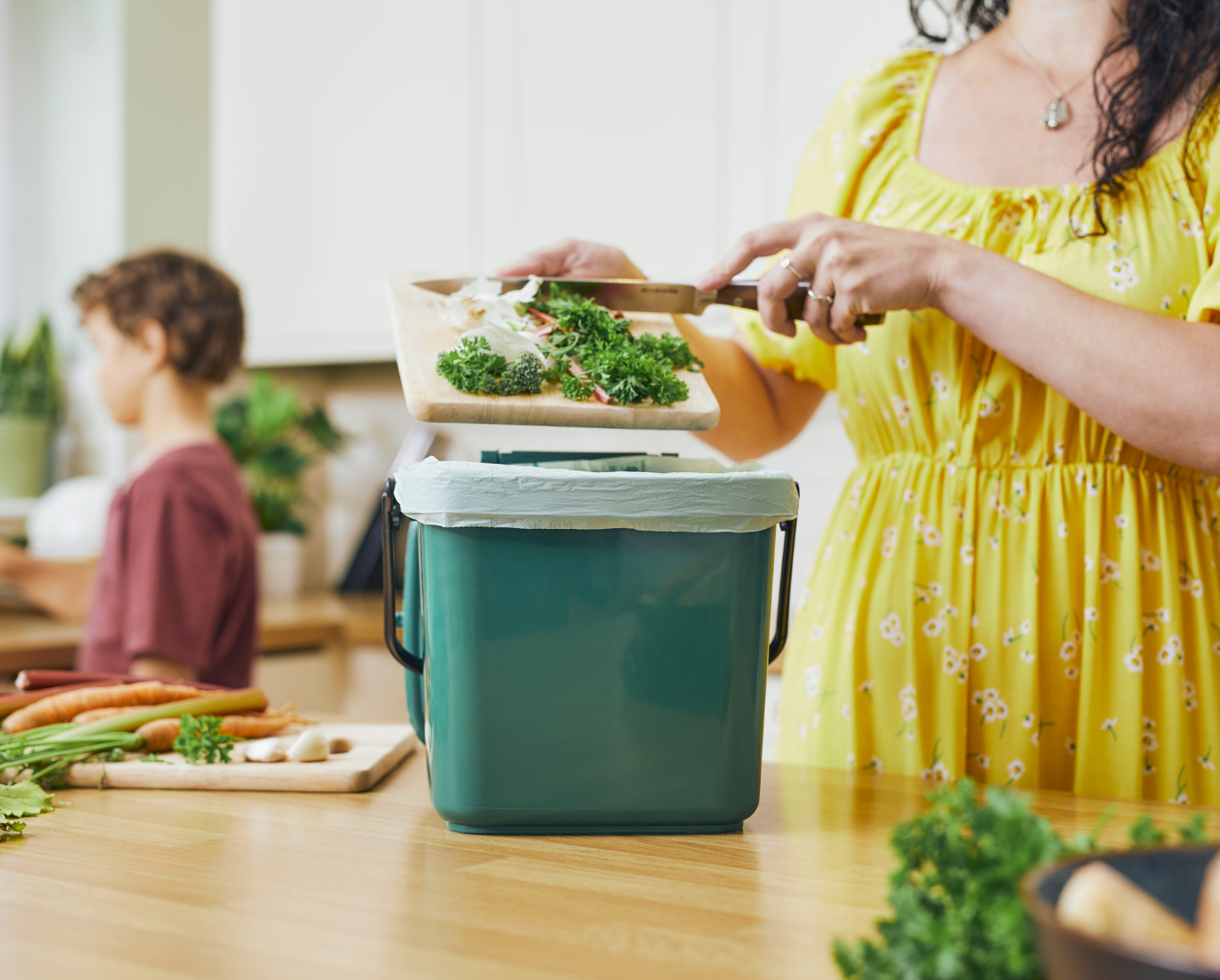 - Stores and handles food and kitchen waste